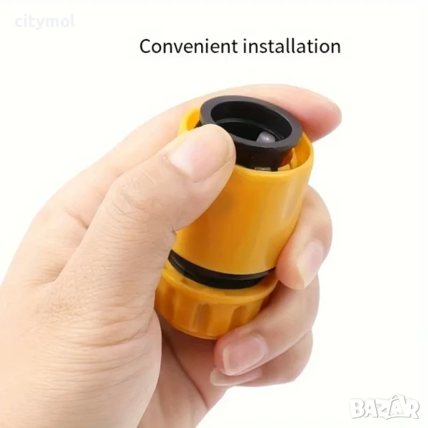 Бързото свързване е съвместимо с маркуч 1/2" DN15 (12 mm). Създаден да пасва на повечето мъжки съединители (16 mm OD), той може да бъде здраво закрепен за секунди.