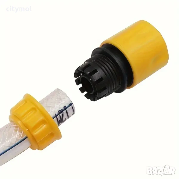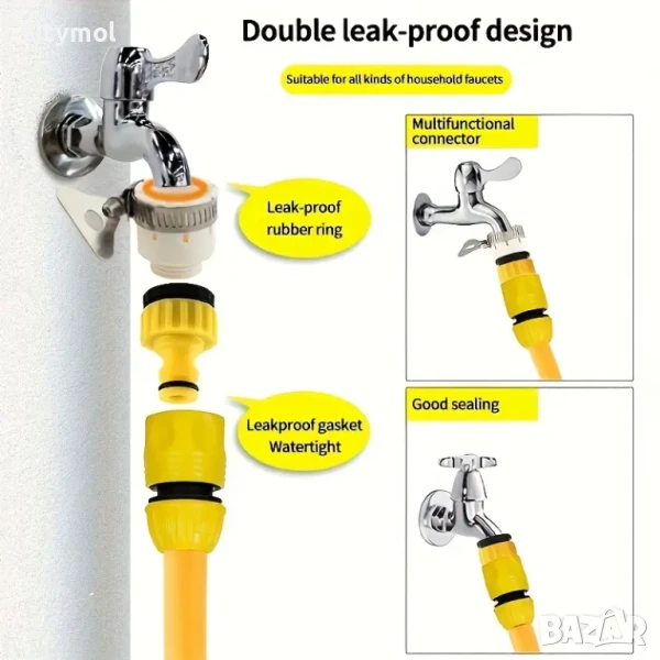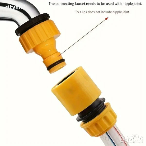 Конекторът за кран се предлага с две части. пасва на 1/2 и 3/4 инчов кран.