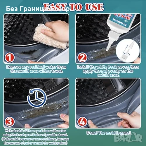 Нов Антимухъл гел 150ml – силикон, фуги, баня, пералня, черен мухъл