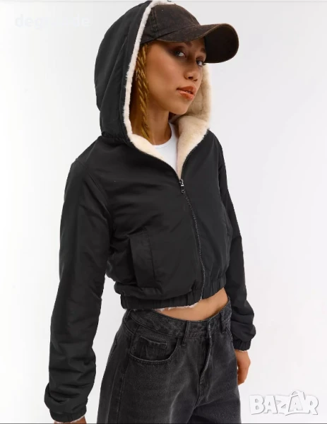 Моделът е с ластик на кръста и ръкавите. Освен на качулката, якето има каракул и по ръкавите и по цялата си вътрешност.