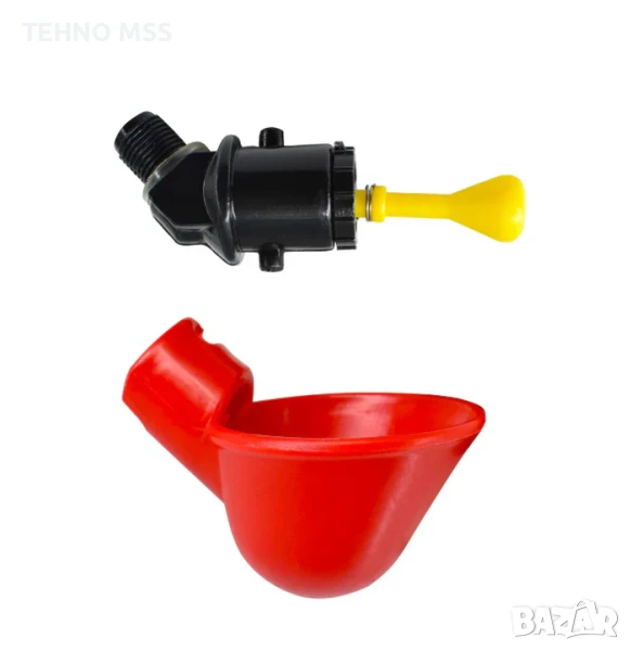 Този автоматичен адаптер е идеален за вашите ферми и домакинства, той е лесен за инсталиране и почистване. Чашата има жълт спусък, който ще привлече птиците да го кълват, когато пилетата кълват жълтия спусък, клапанът автоматично освобождава вода в червената пластмасова чаша. Когато жълтият поплавък започне да плува, захранването се спира.