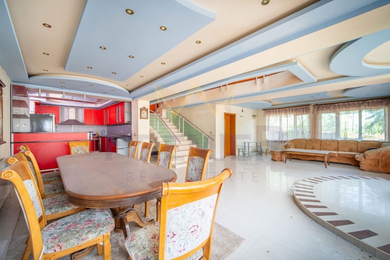 Първи етаж: Просторна дневна с площ около 60 кв.м, с кухненски бокс и голяма маса перфектна за събирания с приятели и семейство. Етажът разполага още със светла и удобна спалня, самостоятелна баня с тоалетна и вътрешно стълбище към горните етажи.