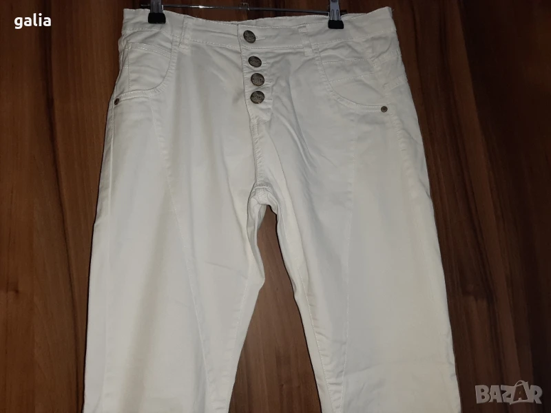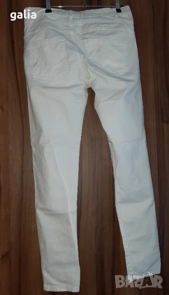 Бял панталон/ дънки/ с ниска талия, размер 38. 97% памук и 3% еластан. Без забележки.