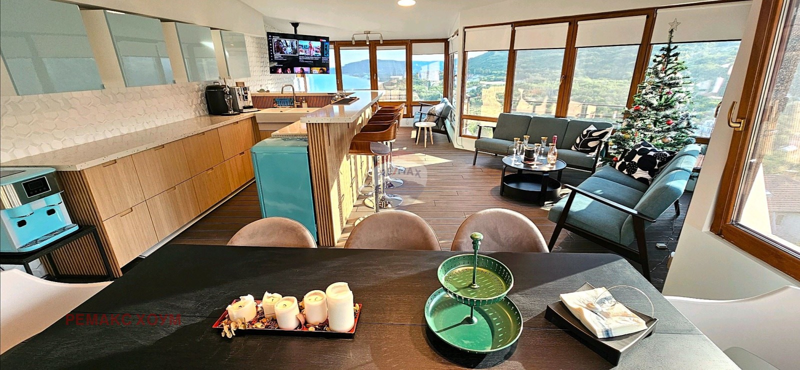 * на ТРЕТИ ЕТАЖ са разположени: две уютни спални със самостоятелни бани, едната от които е с вана с морска гледка, допълнителна самостоятелна баня, антре, вътрешно стълбище;