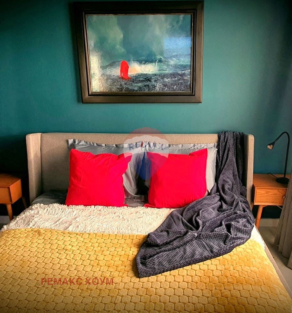 * СТУДИО с морска гледка и отделен вход от гаража, на две нива, свързани със стълба. На нивото на гаража е разположен луксозно обзаведен дневен тракт с оборудвана кухня с всички включени електроуреди, включително пералня със сушилня. На долното ниво е разположена слънчева спалня с баня, тераса с достъп до басейна.