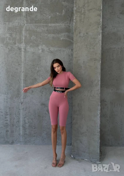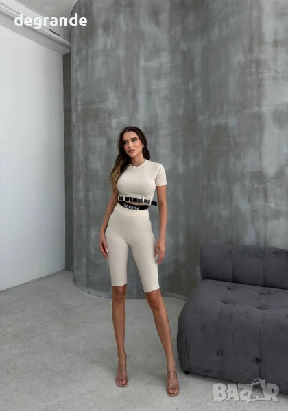 Дамски комплект от две части в цвят бежов и пепел от рози.Свободна линия, подходяща за всяка фигура.Идеален за летния сезон.