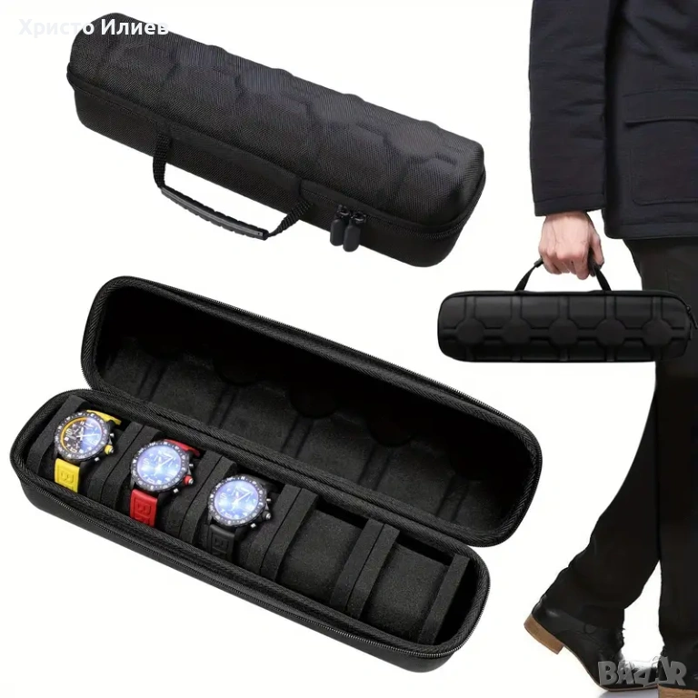 Идеален калъф за съхранение на вашите часовници. Няма да събират прах и ще са прибрани. Стилна и удобна кутия за съхранение с цип!