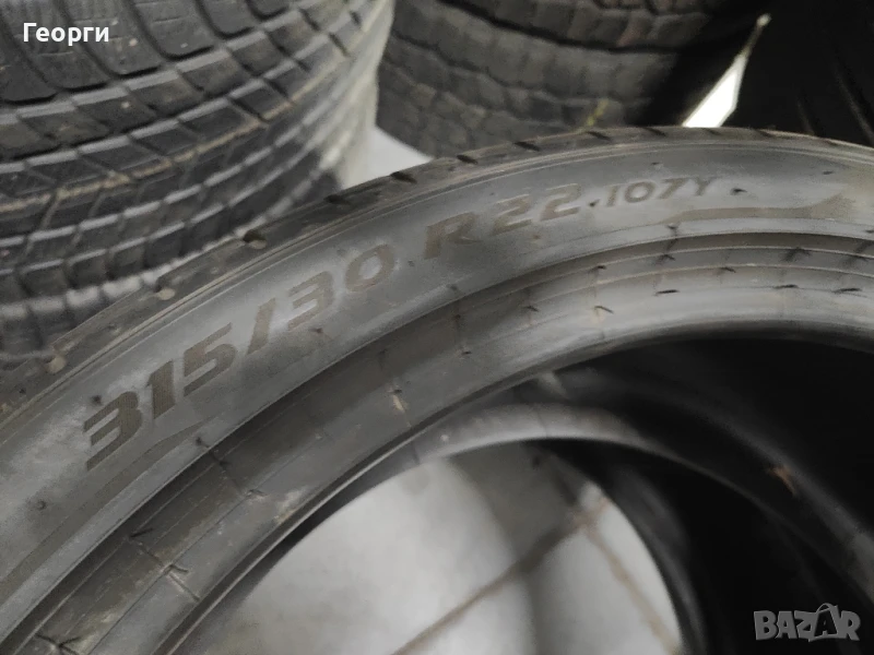 2бр. Pirelli, 315/30/22, ДОТ 2818, 4.8mm грайфер, цената е за 1бр. Гумите са перфектни, без забележки, проверени са на джанта за кривини, балони... !!! Разполагаме с всякакъв размер нова и втора употреба гуми от 14-22 цола за автомобил, джип и бус. Предлагаме също така НОВИ ГУМИ НА ИЗПЛАЩАНЕ!!!