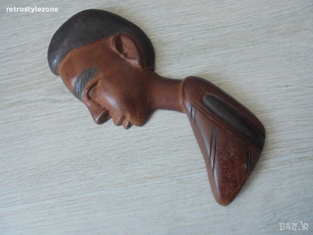 Стара красива дървена фигура, изработена в традиционен африкански стил. Подходяща е за декорация на дом, офис, арт интериор или като подарък за любители на дърворезбата.
