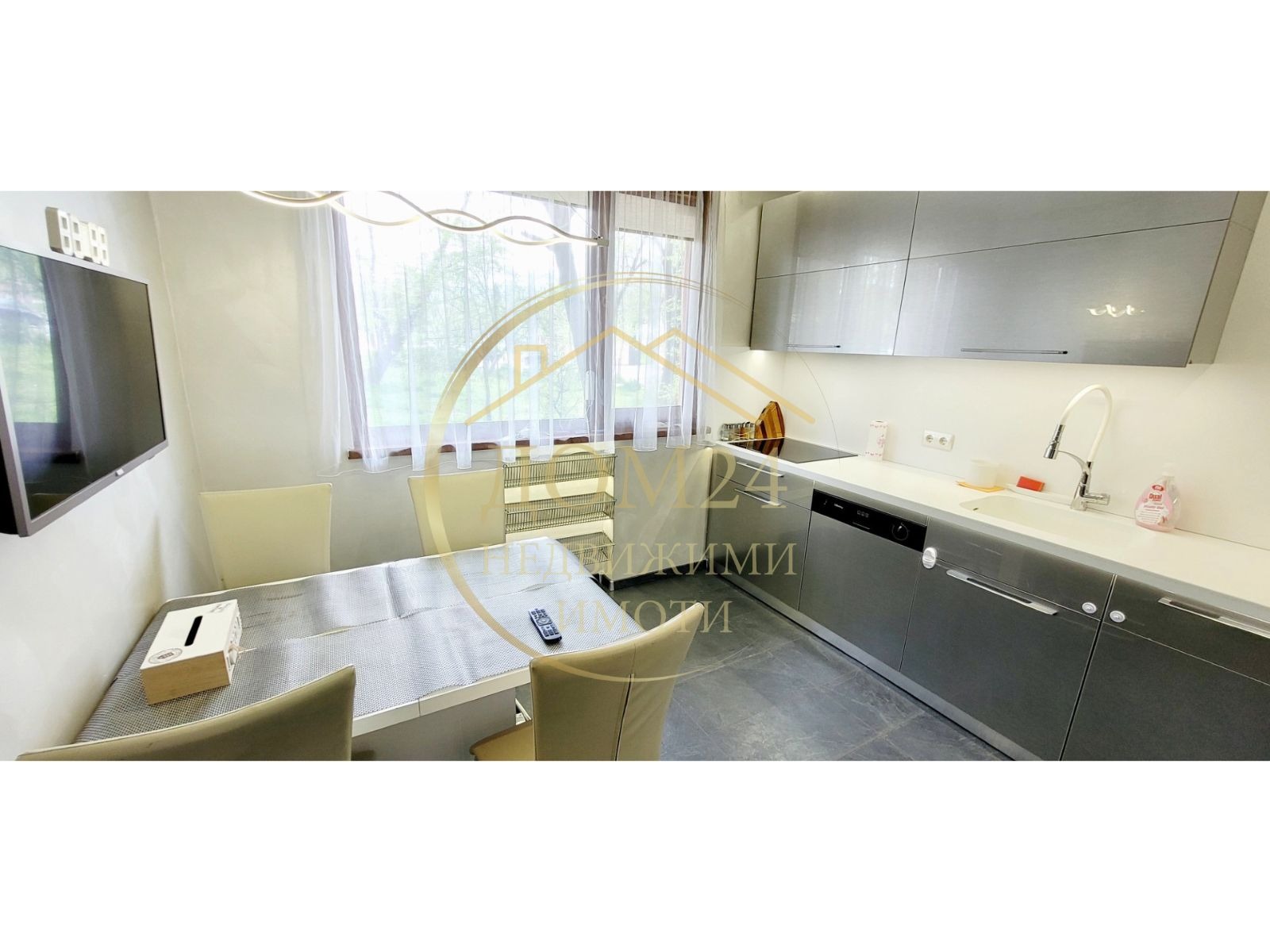 Жилището се продава напълно обзаведено, с ново оборудване, обзаведено в съвременен стил. Апартаментът е с тавани 2.80 и създава чувство за простор и домашен уют.