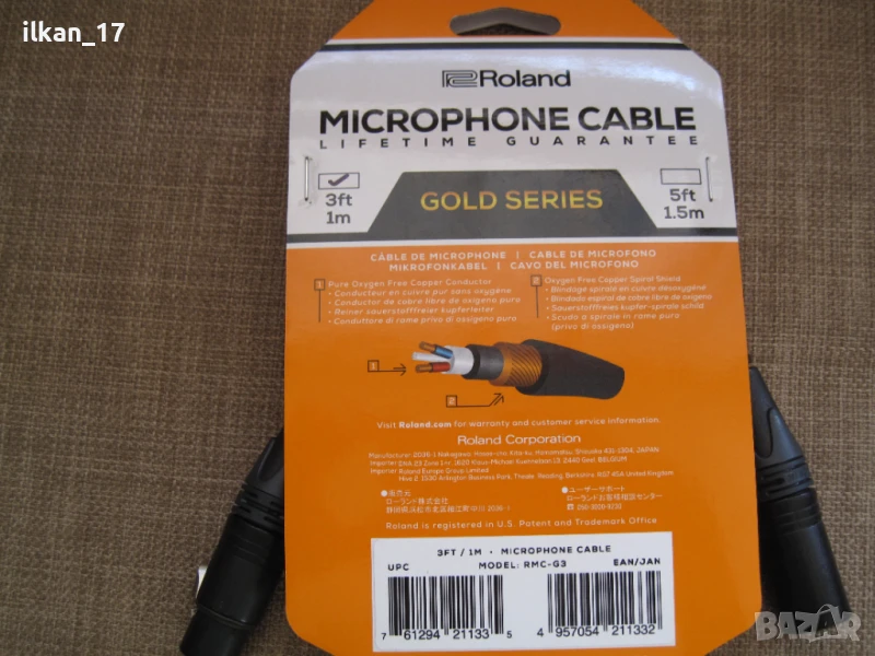 Микрофонен кабел, Neutrik XLR конектори, Roland Gold Seri най високата серия внос от Германия Нов!!!, снимка 1 - Микрофони - 51130959 Микрофонен кабел, Neutrik XLR конектори, Roland Gold Seri най високата серия внос от Германия Нов!!!, снимка 2 - Микрофони - 51130959 Микрофонен кабел, Neutrik XLR конектори, Roland Gold Seri най високата серия внос от Германия Нов!!!, снимка 3 - Микрофони - 51130959 Микрофонен кабел, Neutrik XLR конектори, Roland Gold Seri най високата серия внос от Германия Нов!!!, снимка 4 - Микрофони - 51130959 1/4