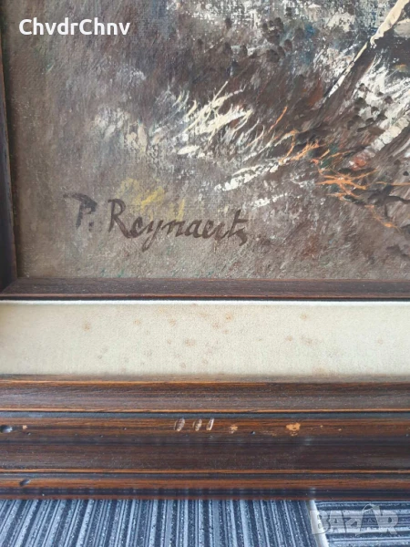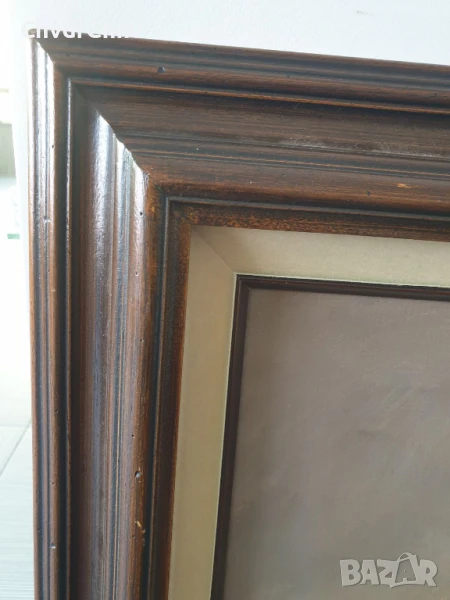 Техника масло върху платно, масивна (широка и дебела) дървена рамка, втора/вътрешна дървена рамка (с паспарту кадифе), дървена подрамка (за платното) със стабилизираща вертикална греда и клинове в ъглите.