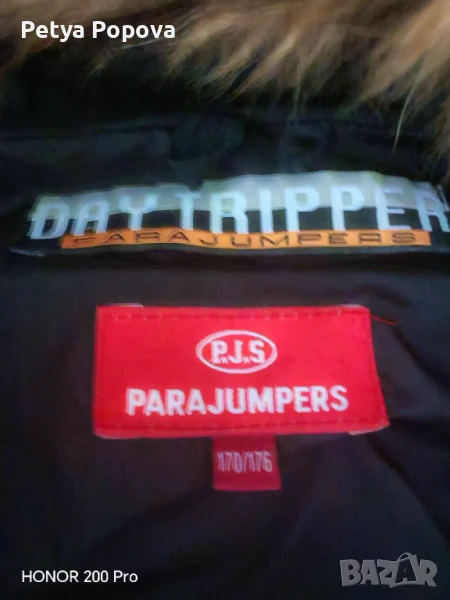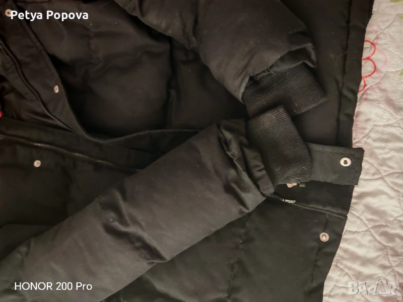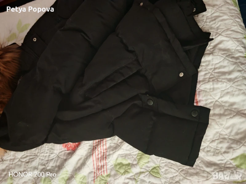 Детско зимно яке за момче с естествен косъм на качулката, ластик на ръкавите, джобове, закопчаване с цип и копчета. Много дебело и топло. Няма забележки. По етикет е размер170-176 см, но според мен е умалено.