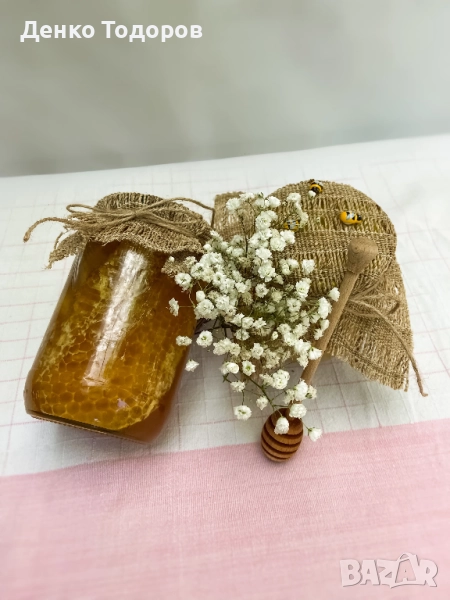 Медът е бутилиран в стъклен буркан, който запазва естествения му вкус и аромат.