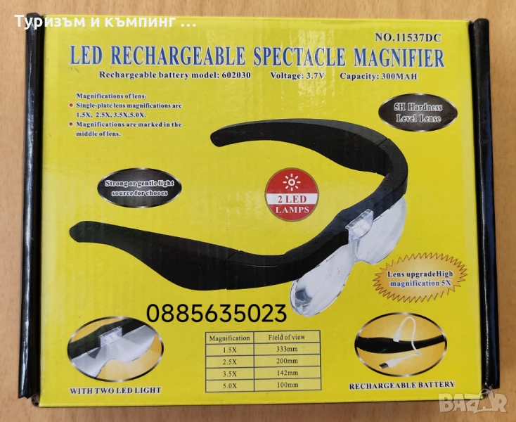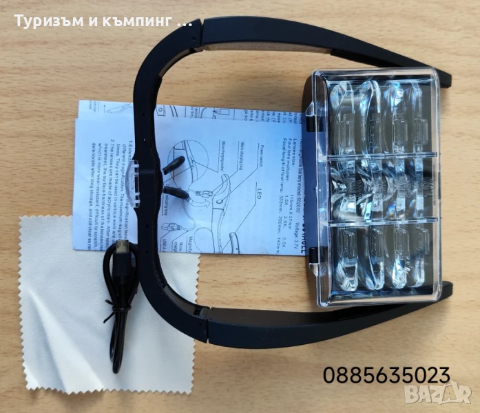 - увеличителни очила- 4 лещи с различно увеличение: х1,5; х2.5; x3.5 и x5- силиконова лента- USB кабелИнструкция за употреба на английски език