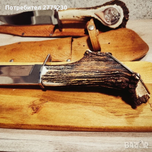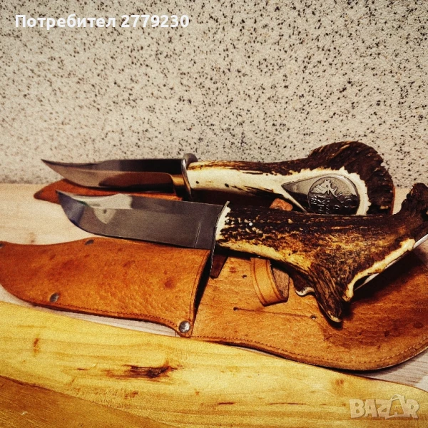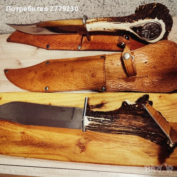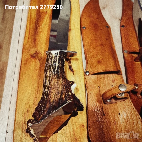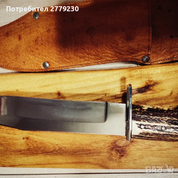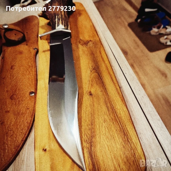 Невероятен, Огромен нож Експонат ръчна изработка!!! Специална поръчка за колекция с дръжка от Благороден Елен с уникална пета! Много масивен и остър. С обща дължина в размер на 42 см.Договаряне.Погледнете и другите ми експонати!