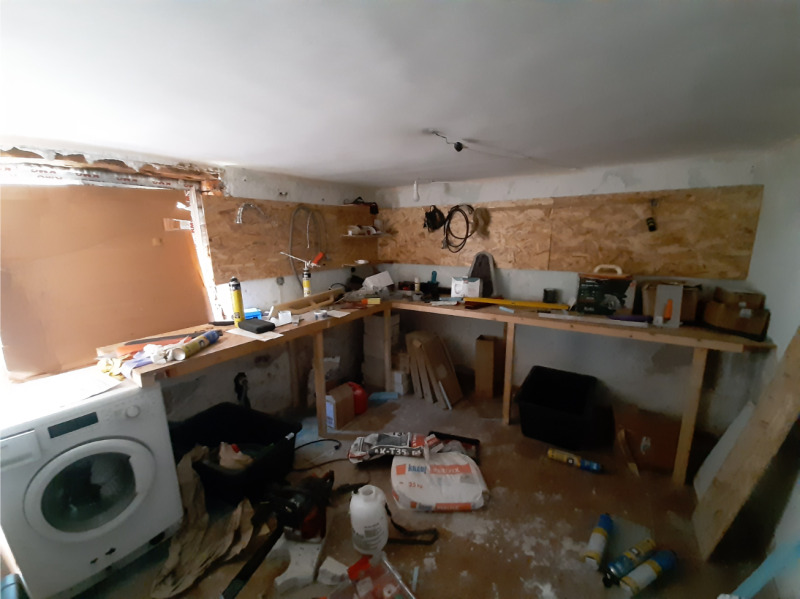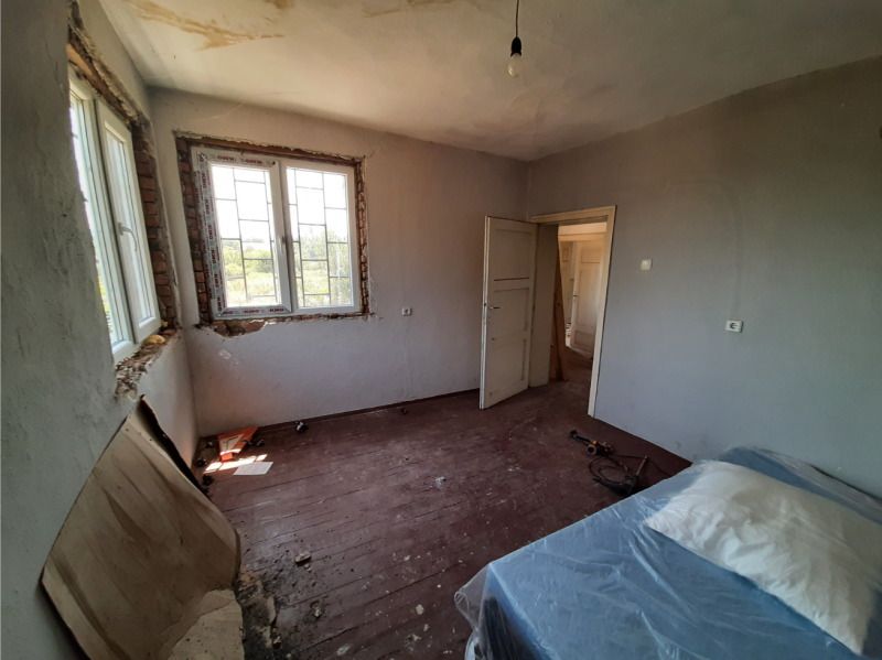 дялан камък. На първият етаж се намират антре, стая предвидена за мокро помещение и килер, баня с тоалетна, кухня с трапезария, всекидневна и още една стая, която е използвана като спалня, но в момента е място за съхранение на инструменти и материали. На втория етаж има три спални, коридор, баня с тоалетна и тераса. Къщата е със сменена дограма и входна врата и е в процес на обновяване, който обаче не е завършен. Баните са готови за ползване, но другите помещения се нуждаят от довършителни работи, които са започнати и са достигнали до определен етап. На част от прозорците и вратите са монтирани охранителни решетки. В имота преди е имало и стара плевня с работилница, която вече не съществува, но може да се изгради наново тъй като е отразена в кадастралната скица на имота. Къщата е разположена върху парцел с остъпено право на строеж, който при желание от страна на новия собственик може да бъде закупен от община Враца на ниска цена. Парцелът е с площ от 1534 кв.м., с правоъгълна форма и граничи с две улици и полето. В района около къщата има няколко други имота, но само някои от тях се обитават. Къщата се намира на около 7-8 минути пеша от центъра на селото, два магазина, кафене и автобусна спирка. Пощата и кметството са на 10 минути пеша. Селото има редовен автобус транспорт, който го свързва с общинския център Враца.