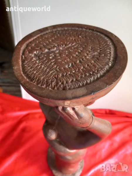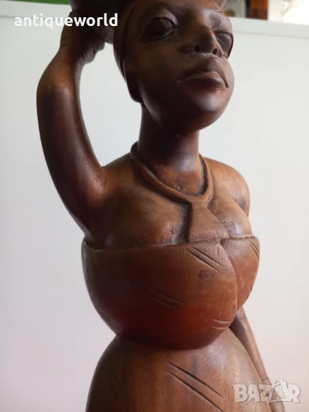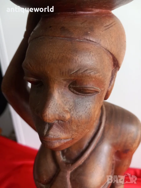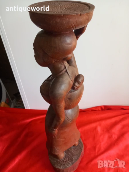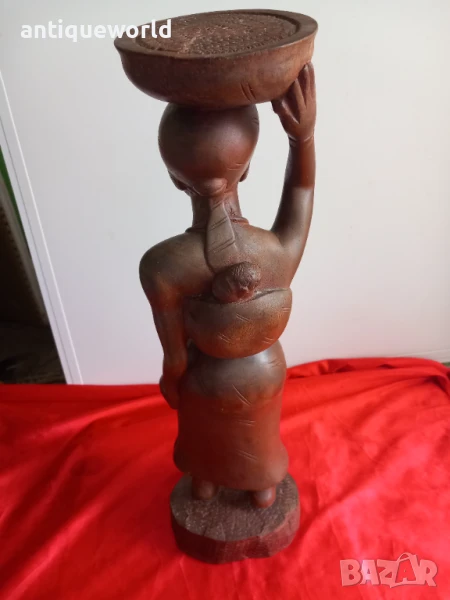 Стара Голяма Масивна АФРИКАНСКА Дървена Скулптура , Фигура Статуетка Жена с Дете. Ръчно Изработена от Масивно ТИКОВО Дърво.