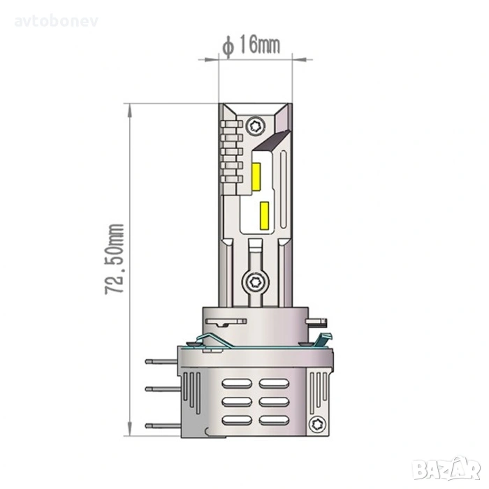 Ултра компактен LED заместител за конвенционални лампи за дълги и къси светлини H1/H3/H4/H7