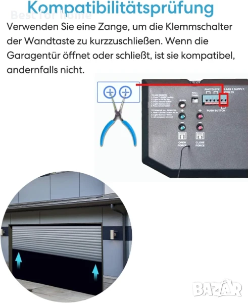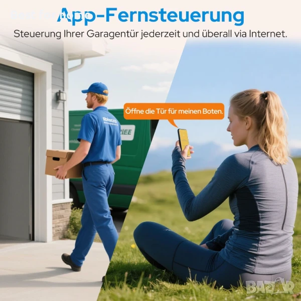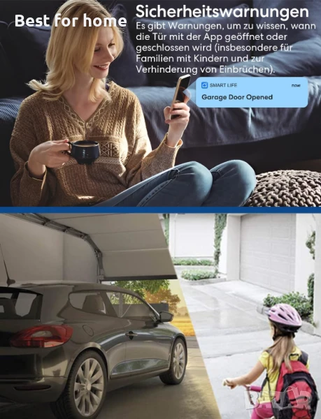 Гласово управление – съвместимо с Alexa – Попитайте вашия Echo високоговорител в коридора или кухнята: „Alexa, отвори гаражната врата“, преди да отидете до колата или когато се върнете с пълни ръце – напълно свободни ръце