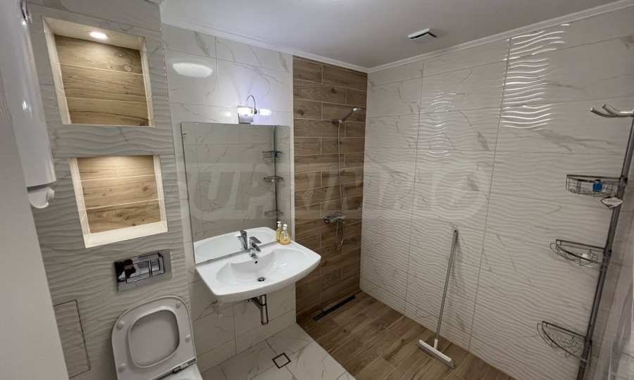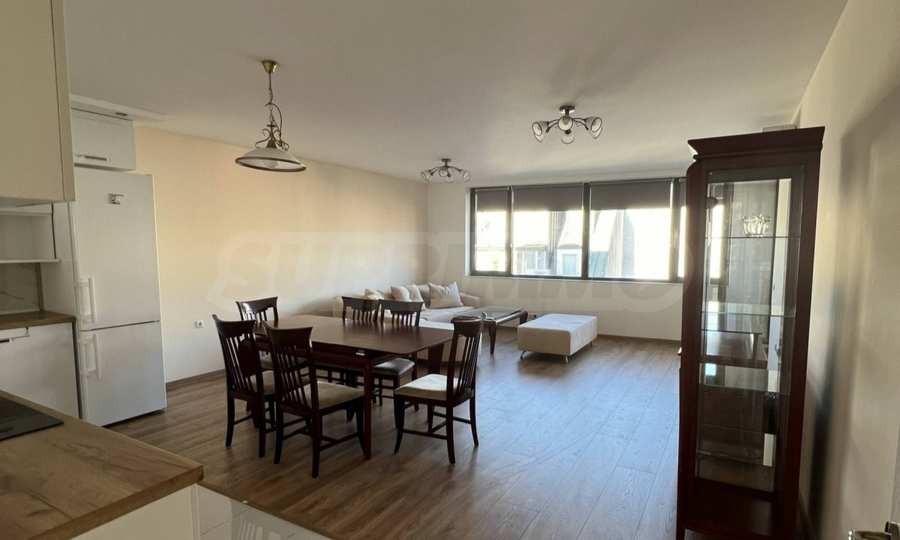 нова кухня.Жилището е изключително светло и топло, напълно обзаведено и оборудвано с нови, качествени мебели и техника, готово за нанасяне. Подходящо е както за лично ползване, така и за инвестиция с цел отдаване под наем.