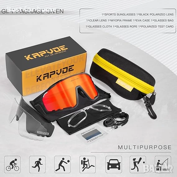 KAPVOE Поляризирани велосипедни очила,спортни слънчеви очила K76