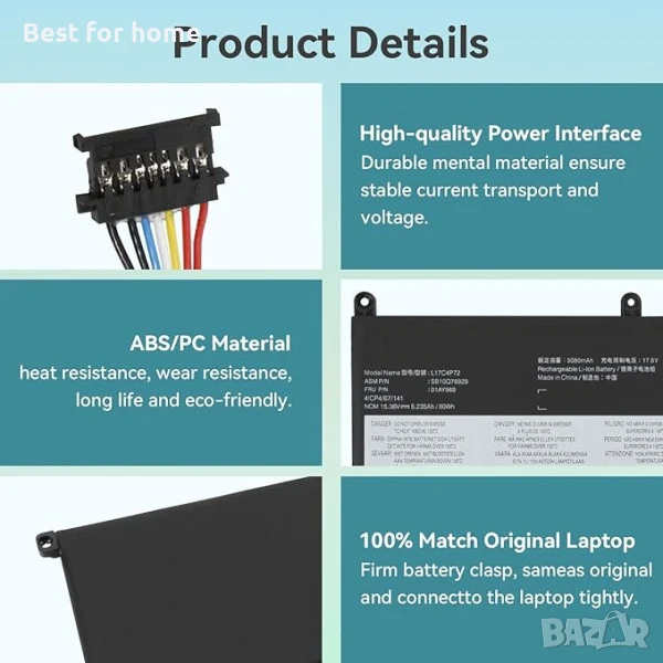 Съвместим номер на част: Резервна батерия за лаптоп L17C4P72 L17L4P72 L17M4P72 L18M4P71 01AY968 01YU911 01AY969 SB10Q76929 SB10Q76928 SB10S57317 5B 10W10W1900 5B10W13899 5B10W13953 5B10V98091