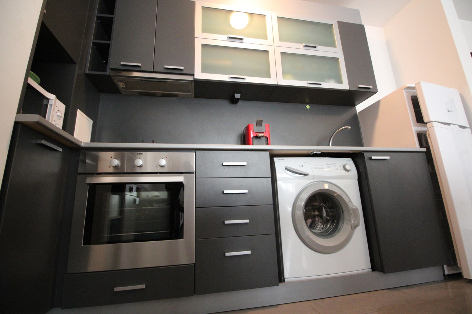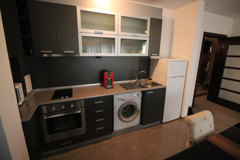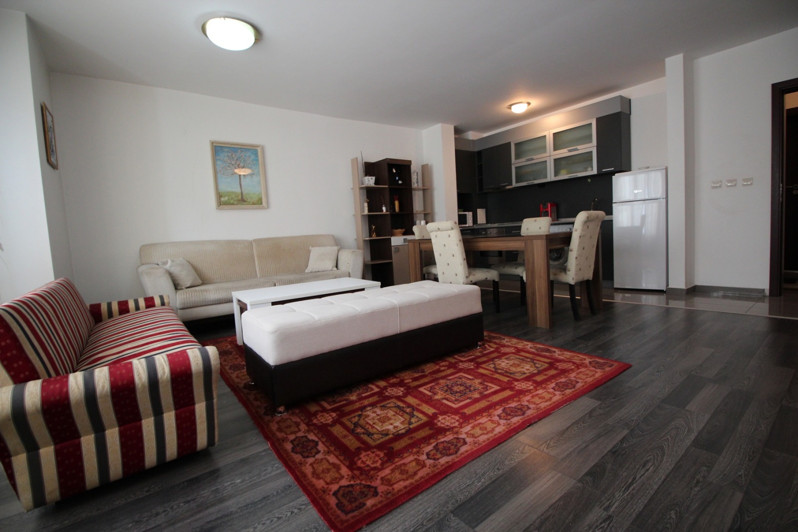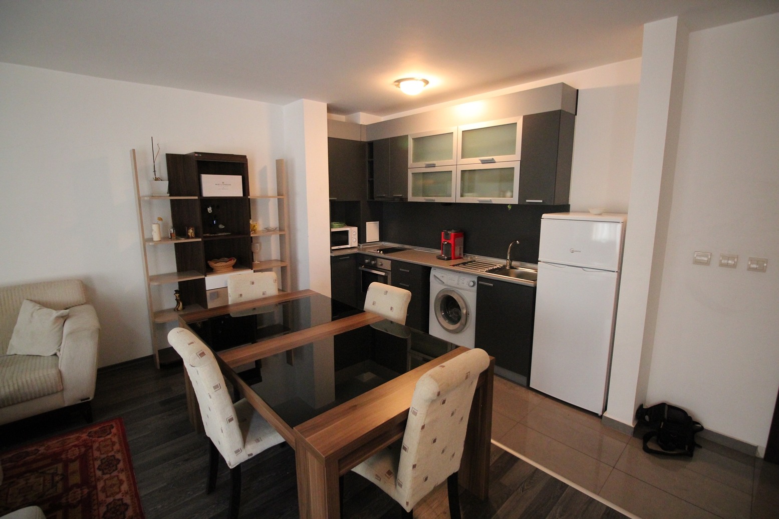 Стилно и комфортно двустайно жилище под наем. Намира се в нова сграда, с добре поддържани общи части в района на пазар Краснодар. Запазени мебели и кухня оборудвана с вградени електроуреди. С възможност за наемане на паркомясто.