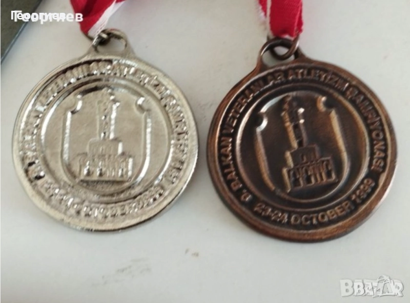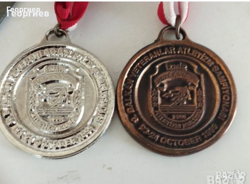 2.Медали 2 бр за ветерани диам.5.5 см.,тегло 75 гр.и надпис:Balkan Veteran Athleticism Izmir-1999 г-5€ за 1 бр.