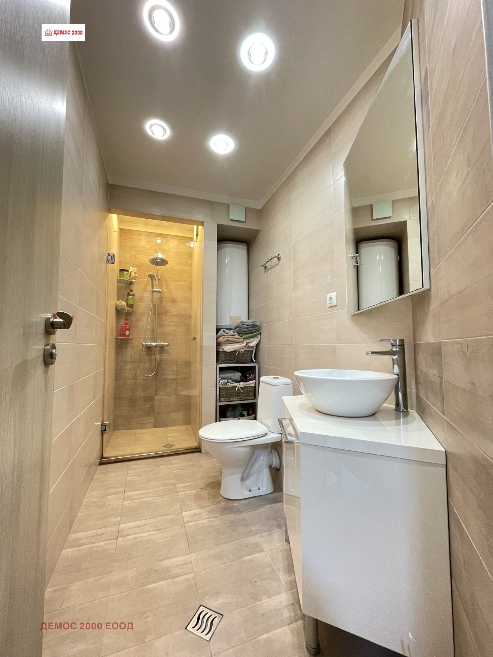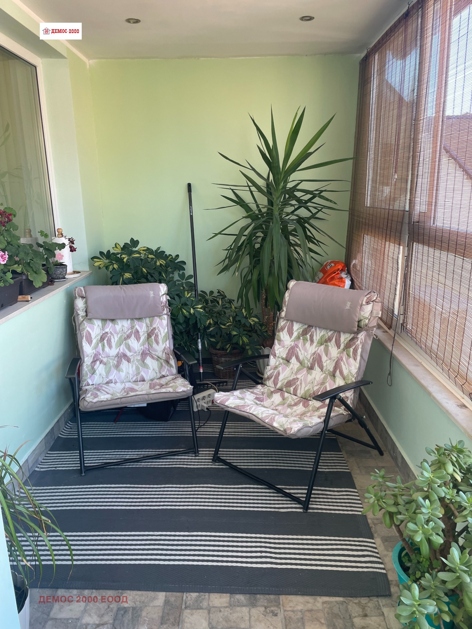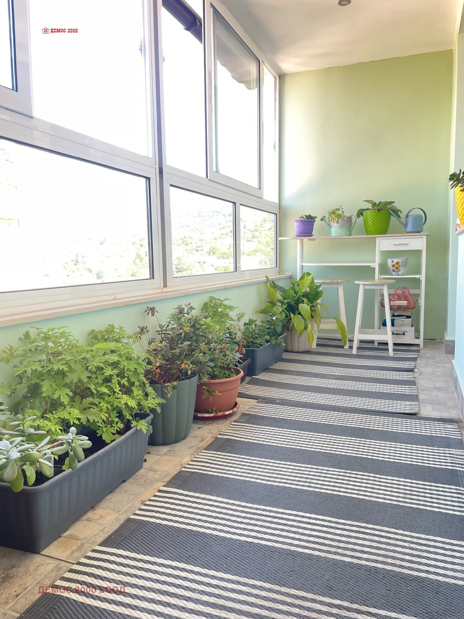 DAIKIN', обширна панорамна тераса на запад, спалня с легло спалня с матрак и голям вграден гардероб, климатик 'DAIKIN', голяма тераса на изток, коридор, дрешник, баня с тоалет! Апартаментът е преустроен двустаен от тристаен апартамент с чиста жилищна площ от 72м2 и 10,51м2 идеални части от общите части на сградата! Първи собственик! Изпълнена изолация на всички вътрешни стени, включително и таваните на стоите. Двойна изолация на покрива над апартамента! Прави тавани, без скосове в стаите! Възможност за наем на подземно паркомясто в сградата при цена 77евро/месец и открито паркомясто при цена 41евро/месец.