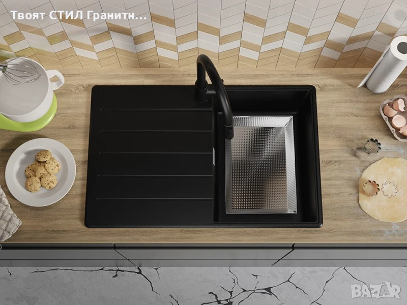 Изработена от издръжлив гранитен композитен материал, тази мивка е изключително устойчива на драскотини, петна и топлина, запазвайки красивия си външен вид дори при ежедневна интензивна употреба. Вграденият отцедник осигурява допълнителна площ за удобно сушене на чинии, плодове и зеленчуци, като ефективно ви помага да поддържате подредено кухненско работно пространство.