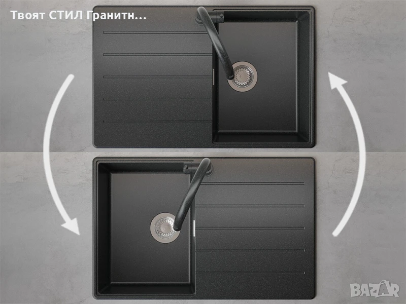• Гъвкавост на дизайна - мивката е въртяща се - отцедникът може да се монтира отдясно или отляво