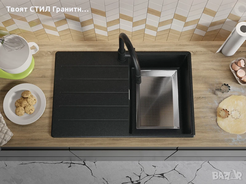 Черна кухненска мивка Копенхаген 780-45 Top от гранит – елегантен дизайн и ежедневна функционалност