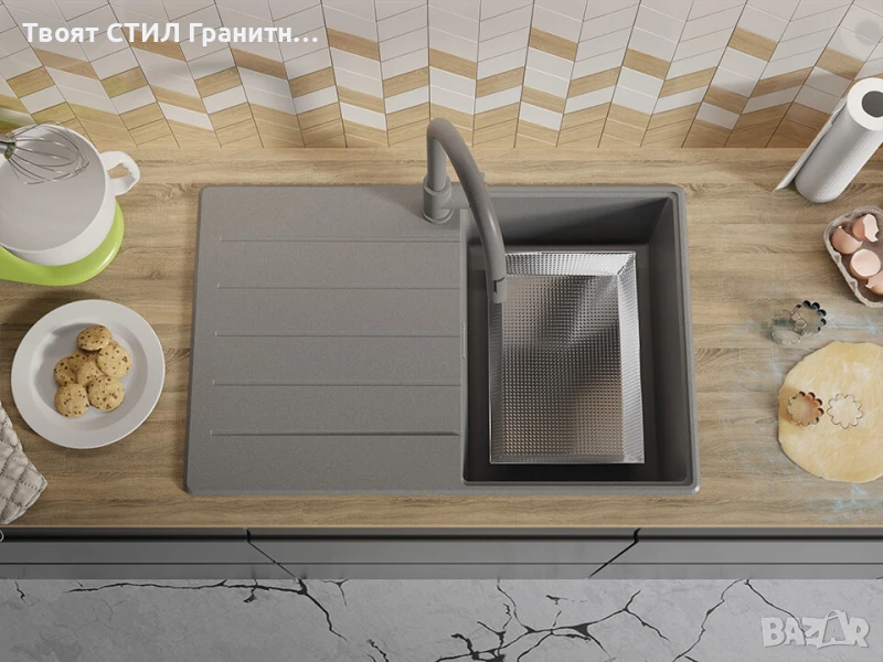 Изработена от издръжлив гранитен композитен материал, тази мивка е изключително устойчива на драскотини, петна и топлина, запазвайки красивия си външен вид дори при ежедневна интензивна употреба. Вграденият отцедник осигурява допълнителна площ за удобно сушене на чинии, плодове и зеленчуци, като ефективно ви помага да поддържате подредено кухненско работно пространство.