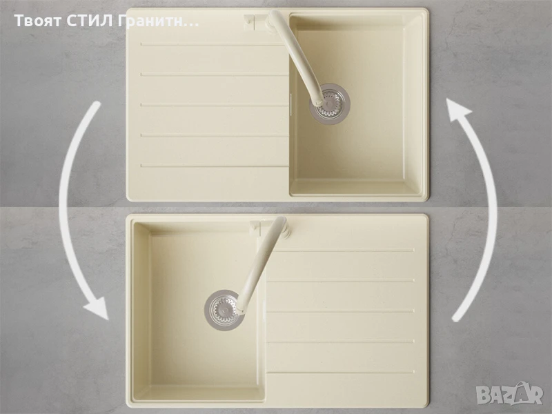 • Гъвкавост на дизайна - мивката е въртяща се - отцедникът може да се монтира отдясно или отляво