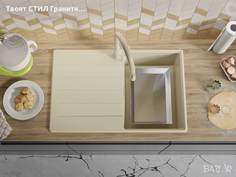 Беж кухненска гранитна мивка Копенхаген 780х500 Top 45 → Обява 51139991