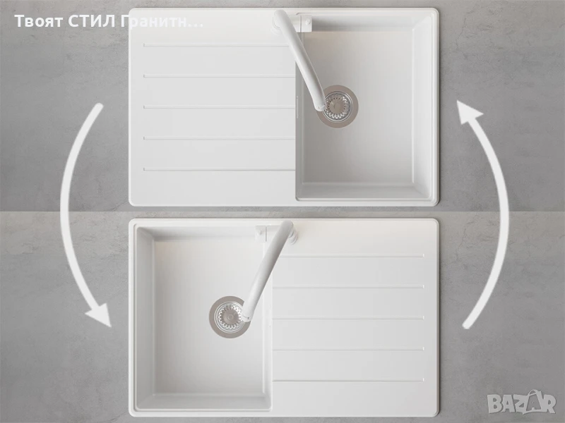 • Гъвкавост на дизайна - мивката е въртяща се - отцедникът може да се монтира отдясно или отляво