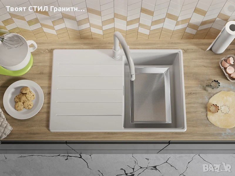 Бяла кухненска гранитна мивка Копенхаген 780х500 Top 45 → Обява 51139994