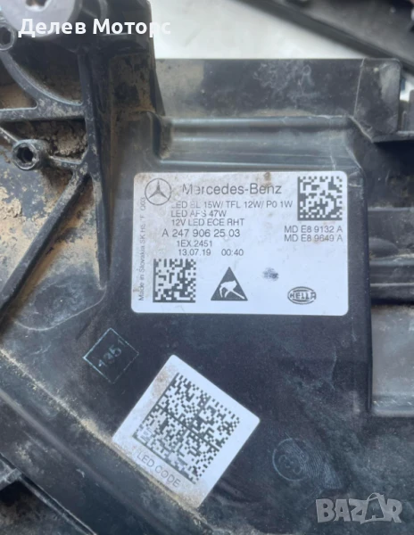 Ляв фар A2479062503 FULL LED от Mercedes Benz B-class в автоморга Delev Motors, между с. Каменар и с.Куманово гр. Варна. ВСИЧКИ ЦЕНИ СА С ВКЛЮЧЕНО ДДС. ВСИЧКИ ЧАСТИ СА С 14 ДНИ ПРАВО НА ВРЪЩАНЕ. Изпращане на части чрез наложен платеж с ЕКОНТ с 30% отстъпка от куриерските услуги за цялата страна, получаване на следващият ден. Доставката и връщането е за сметка на КУПУВАЧА. Изкупуване на западни и японски автомобили, джипове и бусове след 2020 г. за части. Издаване на удостоверение за бракуване пред КАТ. Издаване на всички необходими документи за регистърация на двигател в КАТ. РАБОТНО ВРЕМЕ ОТ ПОНЕДЕЛНИК ДО ПЕТЪК от 9.00 ч. до 18.00 ч., ПОЧИВНИ ДНИ СЪБОТА И НЕДЕЛЯ. За контакти: 0897852371