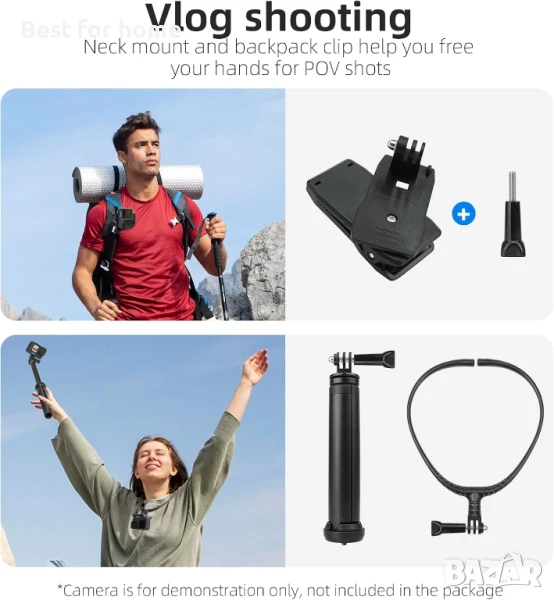 【Стол за врата и 360 градуса каишка за китка】Съвместим с GoPro Max Hero 11, Hero 10, Hero 9, Hero 8, Hero 7, Hero 6, Hero 5 Black, Hero 4, 3 Fusion Session, DJI Osmo Action 4, 3 Pocket 2, Insta360 GO 3, One R, One X2, Go2 и други преносими камери като Dragon Touch / APEMAN / Crosstour / XiaoYi / Apexcam / VEMONT / AKAIRIO и др., подходящ и за различни смартфони като iOS, iPhone 13 Plus Max, iPhone 13, iPhone 12, iPhone 11 XR, Samsung S10/S9, Android.