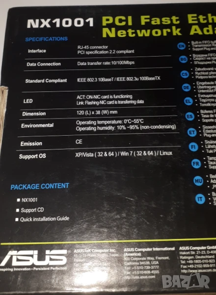 Мрежова карта ASUS Fast Ethernet NX 1001 PCI Adapter 10/100 MBps