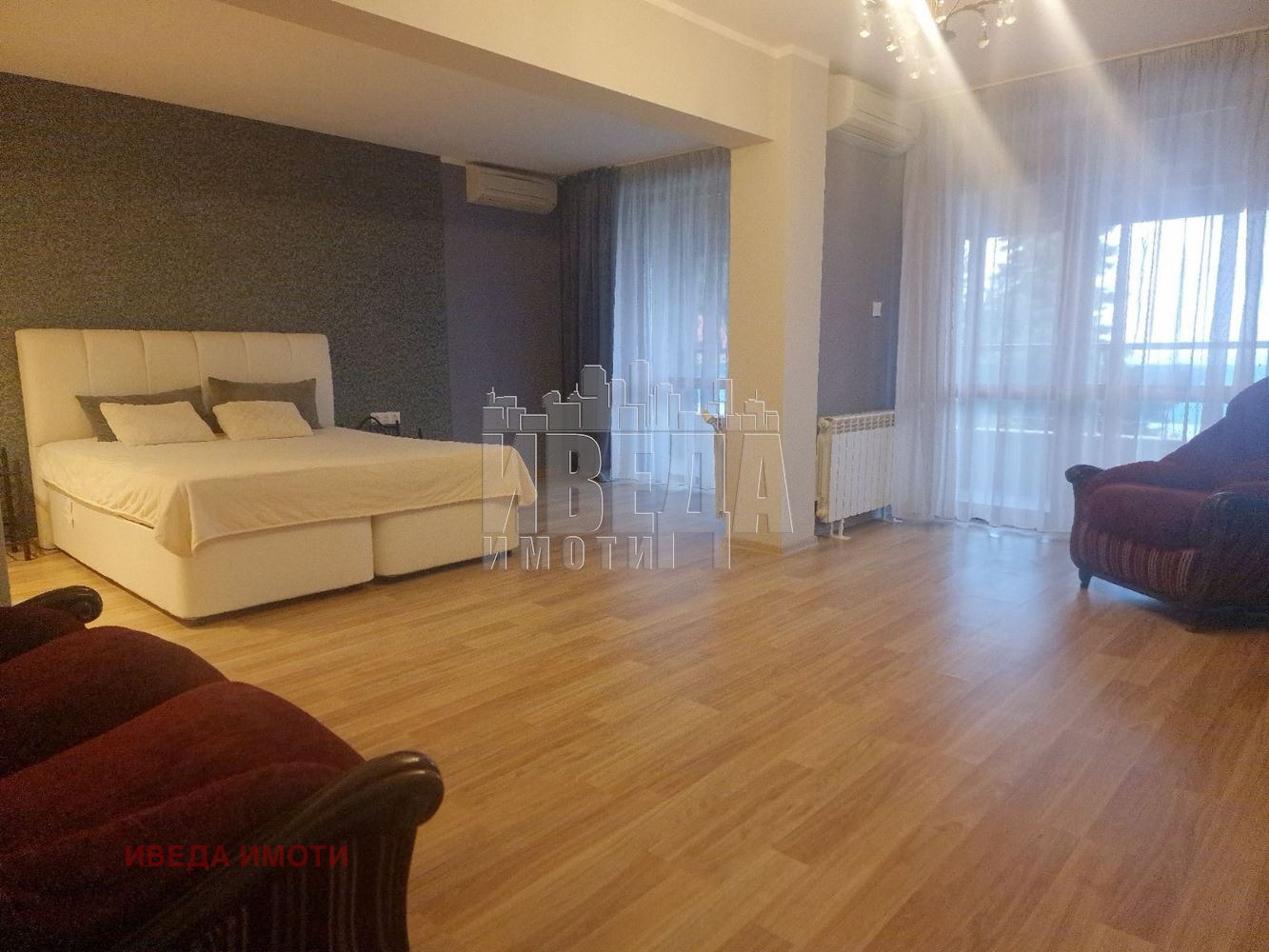 Огромна дневна зона с високи тавани и естествена светлина, с елегантна камина, създаваща уют през зимните месеци.