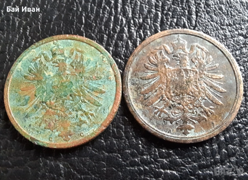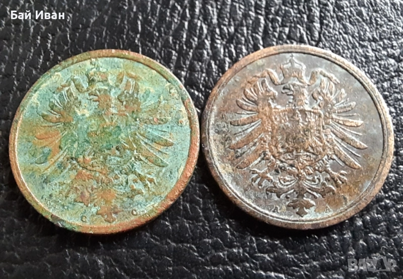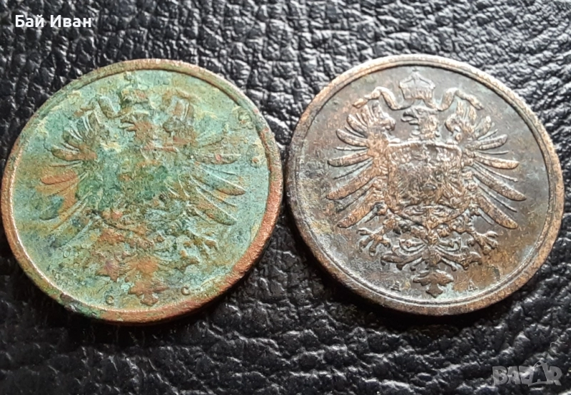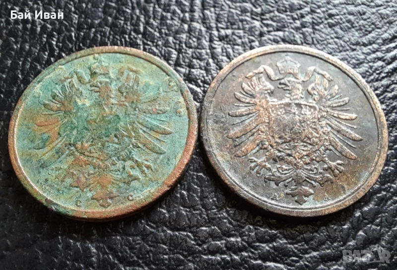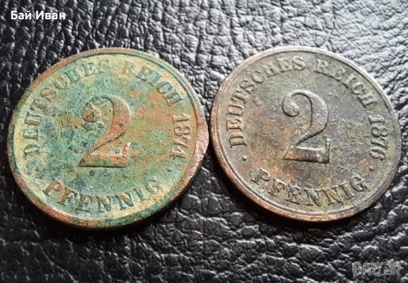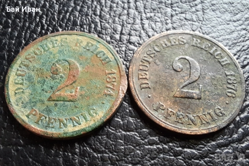 Стара монета 2 пфенига 1874 г. буква С и 1876 буква А- Германия- бронз , рядки → Обява 51140679