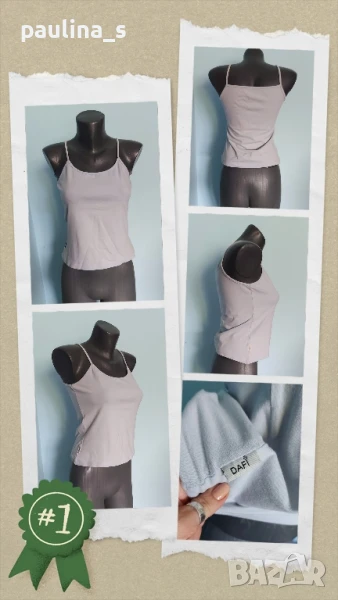 3️⃣. Колаж / M / XL - "DAFI". Цената е крайна 9,99лв. Памучен еластичен потник, българско производство. Материята е памук и ликра, доста еластична и покрива няколко размера до XL. Цветът е светло сив, леко втален силует, класика в жанра, като нов.