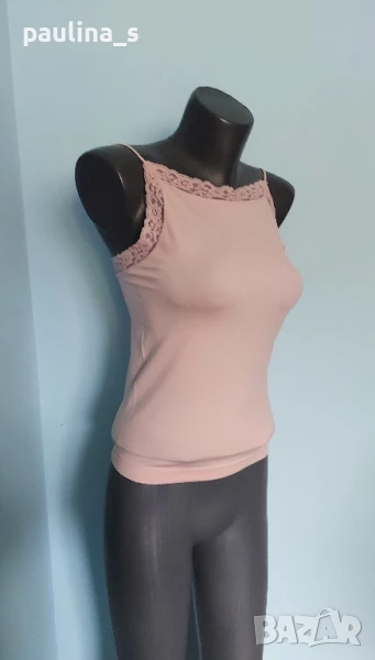 2️⃣. Колаж / L / 2XL - "S'AIX". Цената е крайна 19,99лв. Много красив потник с дантела, в бледо розово. Материята е много еластична и покрива няколко размера до 2XL. Може да се носи под сако или яке, като топ. Нов, никога не е ползван.