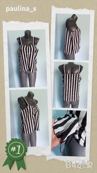 6️⃣. Колаж / L / XL - Копринен потник тип бюстие. Цената е крайна 14,99лв. Бюстие / потник във вертикално райе, с цепки в страни. Нов, никога не е ползван. Материята е ацетатна коприна, без еластичност, моя изработка по модел на Бурда / Burda.