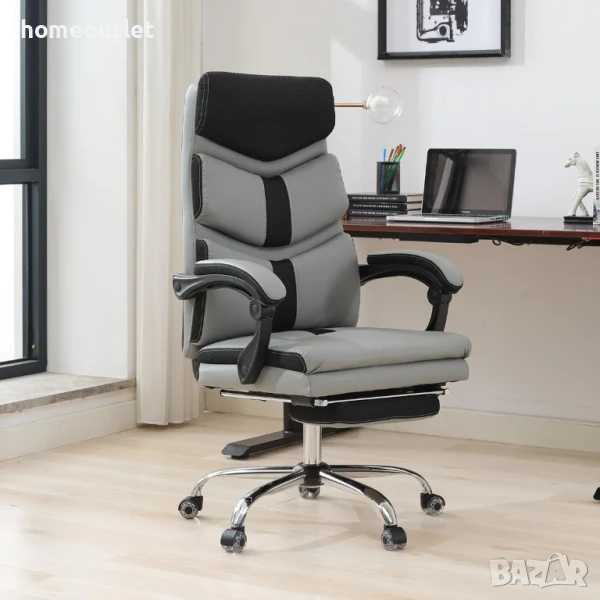Офис столът разполага и с регулируема по височина седалка и прибираща се поставка за крака, което ви позволява да сменяте позицията, за оптимален комфорт по време на почивките.