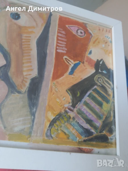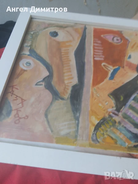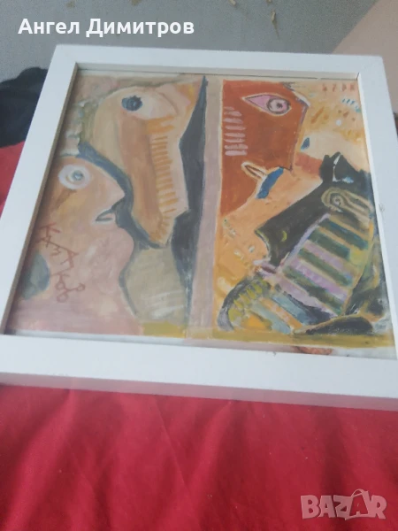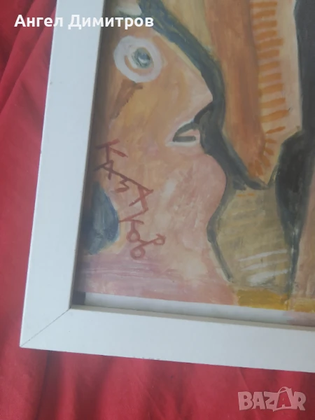 Димитър Казаков Нерон картина смесена техника , картината 23-23 см , 25,5-25,5 см с дървената рамка и стъкло , мояста