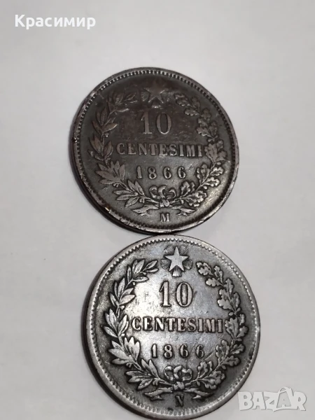 10 Чентесими 1866 г.Буква м.Буква N. Монети с прекрасна Патина.Като нови.