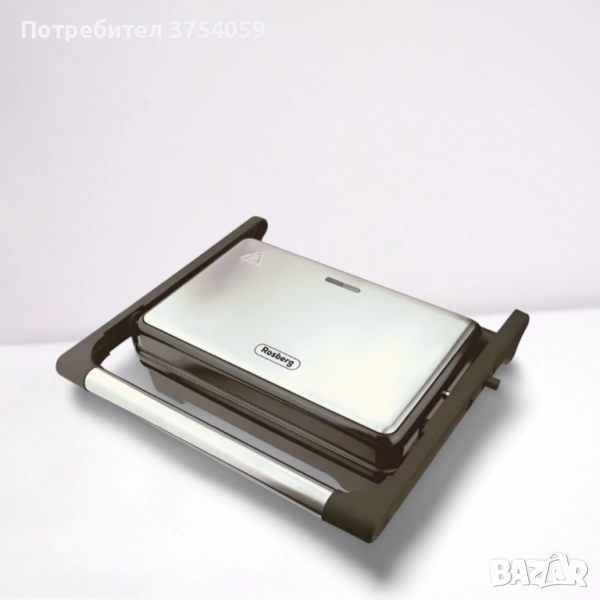 Тостер-сандвич Rosberg 1500W, Грил незалепващи бр. 1 плочи, Инокс с черно, 2 ГОДИНИ ГАРАНЦИЯ → Обява 51143053